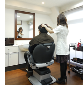 サロンでは、かつらのご注文やお手入れなどの他に、一般の美容室と同じセット・カット・パーマ・カラーなどの施術をお受けいただけます。