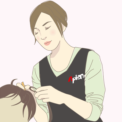 わたしたちが作業している工場は、普段はお客様からは見えないところにあります。中はいくつかの部門にわかれ、その中で私は植毛を担当しています。 仕上がってきた土台となる型に、スタイリストが型紙に書きこんだ記号や指示を見て仕上がりのスタイルを想像しながら毛を植えていくのです。これまでに、たくさんの製品を作ってきましたが、何回もお作りいただいているお客さまの製品は、型紙やお預かりしたものを見ただけでその方の微妙なニュアンスや特徴までわかってしまうことも。修理を重ねながら、長く大切にお使いいただいている製品を見ると、技術者としてとてもうれしく思います。