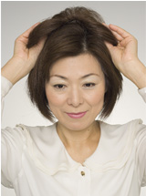 ヘアピースは、簡単装着。手ぐしでサッと梳かしてまわりの自毛となじませれば、お出かけ前も短時間でオシャレな自分に変身!気軽にはじめられるから、初めての方でも安心。
